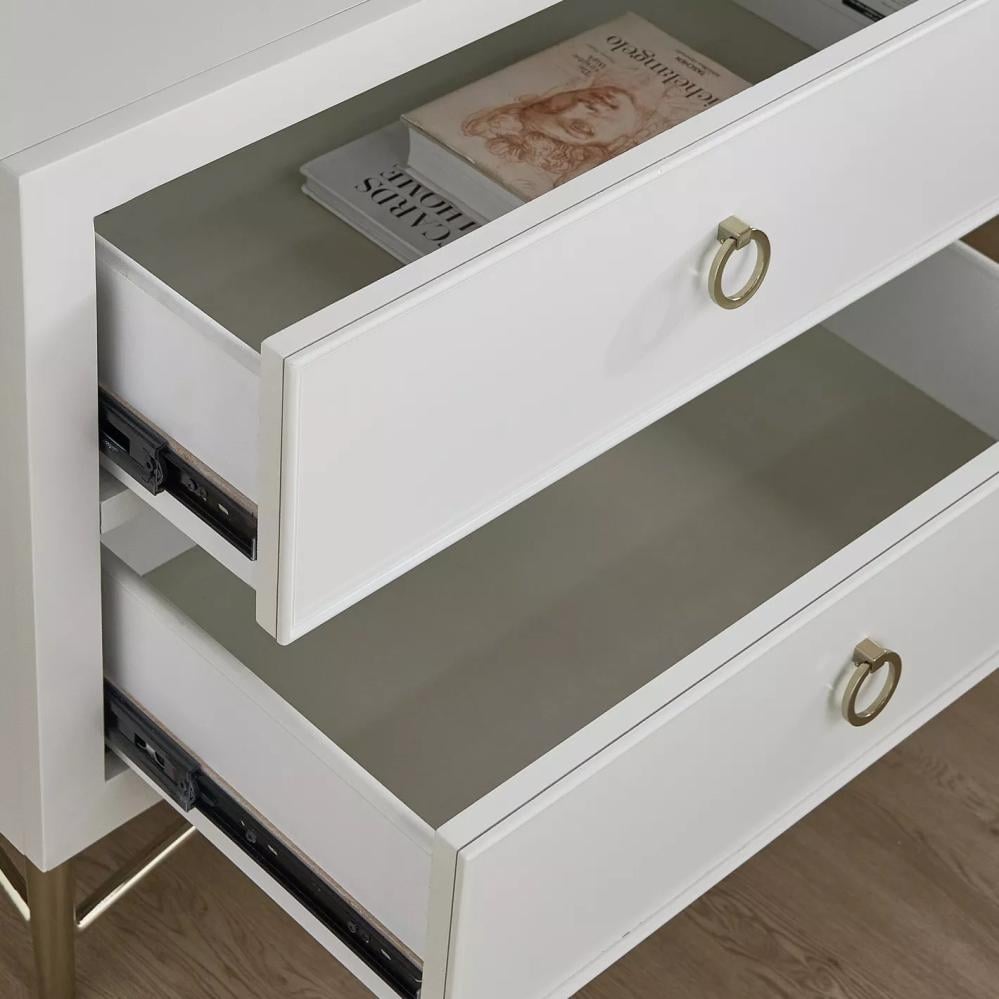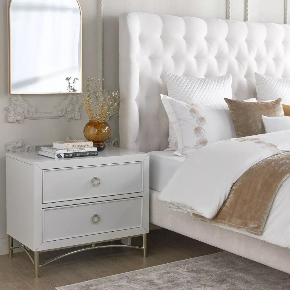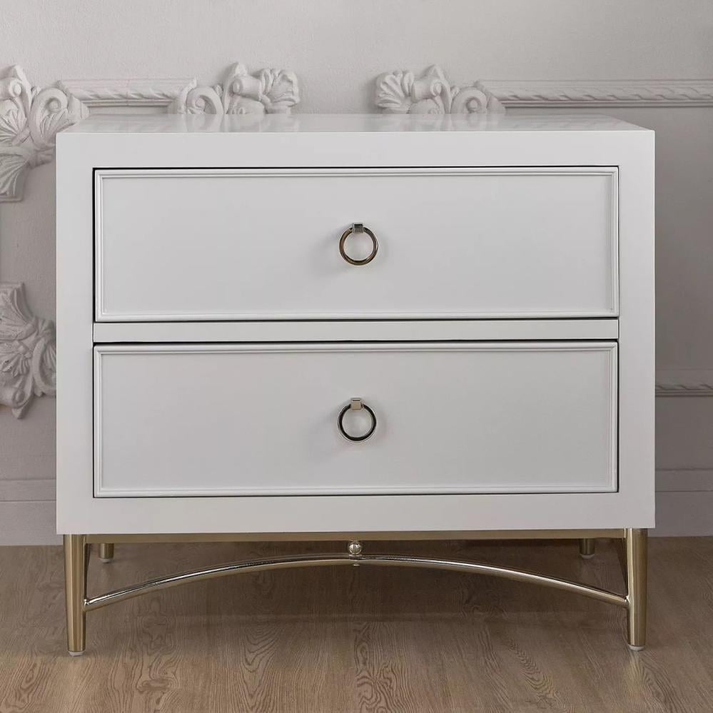 ارتقي بديكور أثاث غرفة نومك باقتنائكِ للكومدينا الفاخرة هذه. مُصممة بدرجين بمساحة تخزين وفيرة، مستطيلة الشكل وتتمتّع بتشطيب يمنحها مظهرًا مصقولًا آسرًا. كما تتميّز بمقابض على شكل حلقات، عصريّة وتستحق الاقتناء.