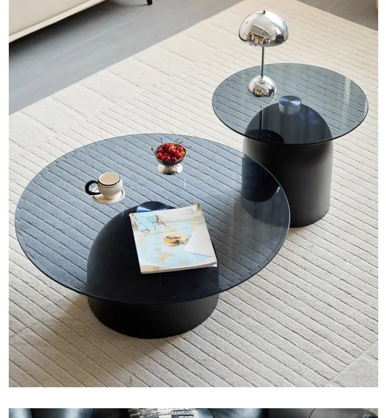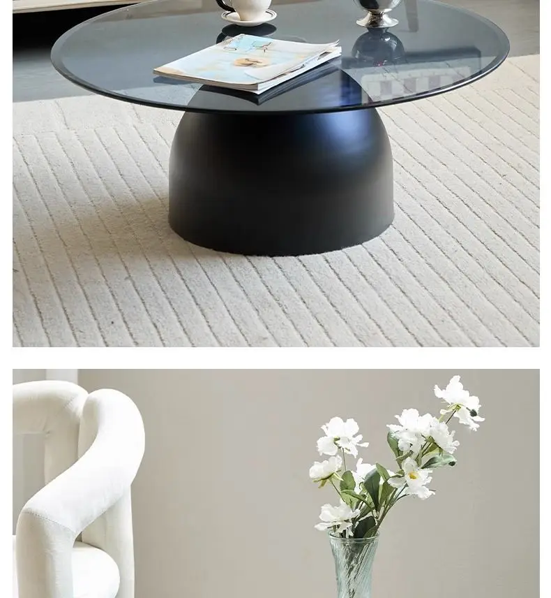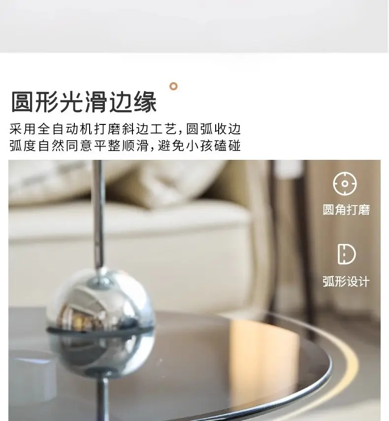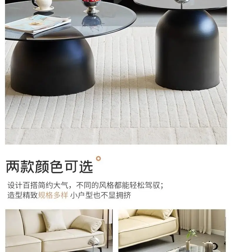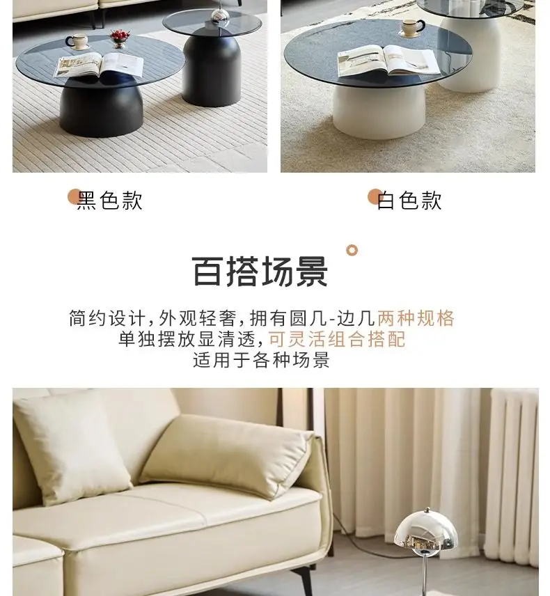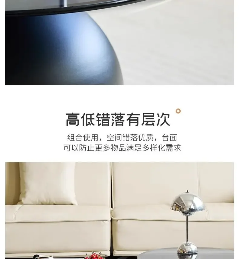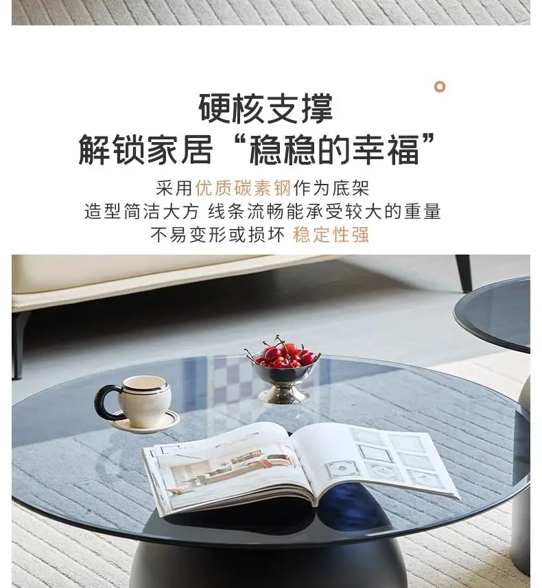 طاولة قهوة زجاجية مستديرة حديثة، قاعدة معدنية وسطح من الزجاج المقسى، طاولات جانبية متداخلة لغرفة المعيشة، طاولة أريكة،