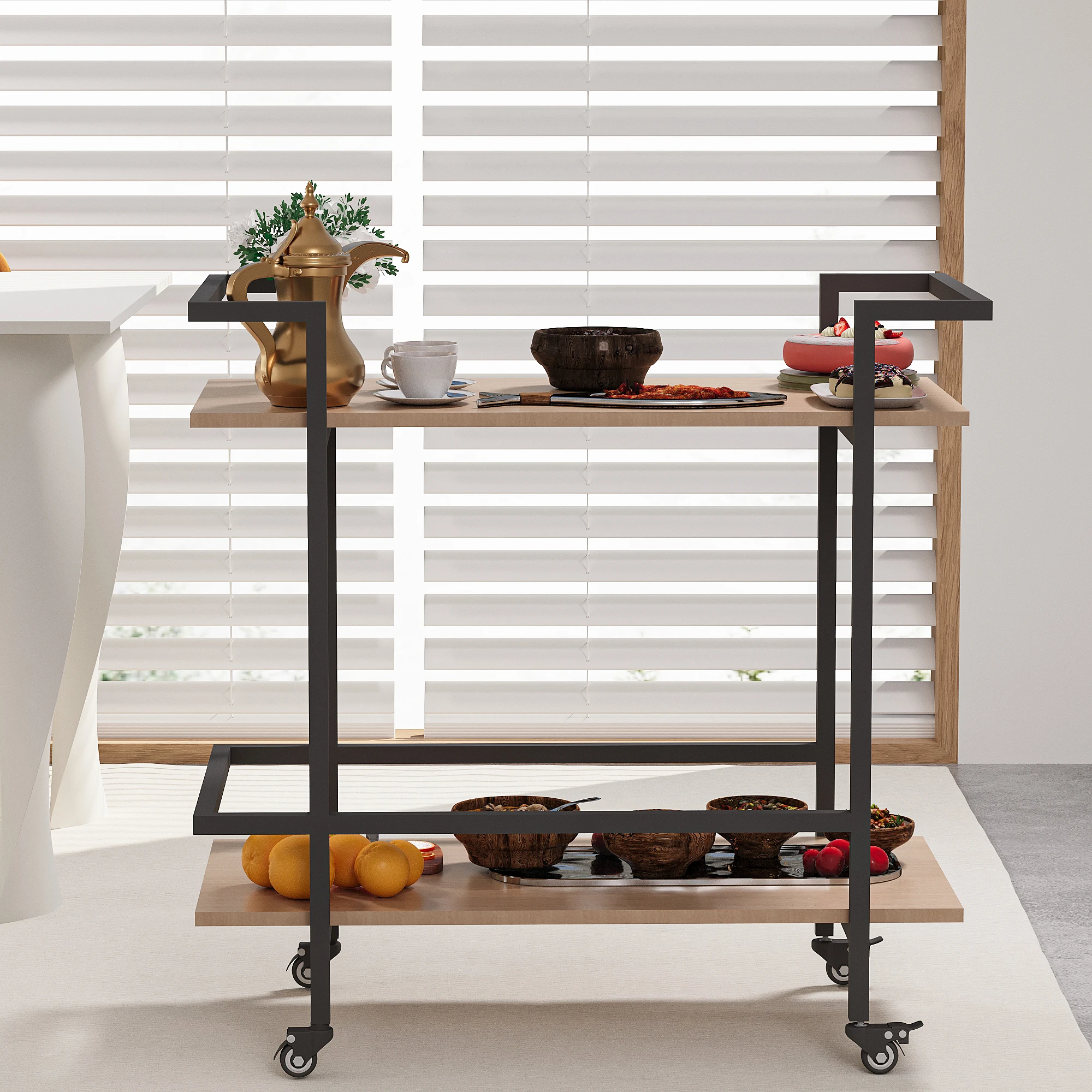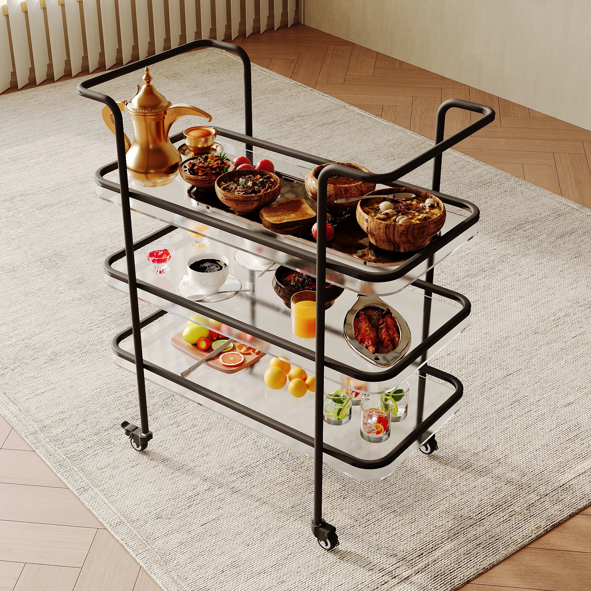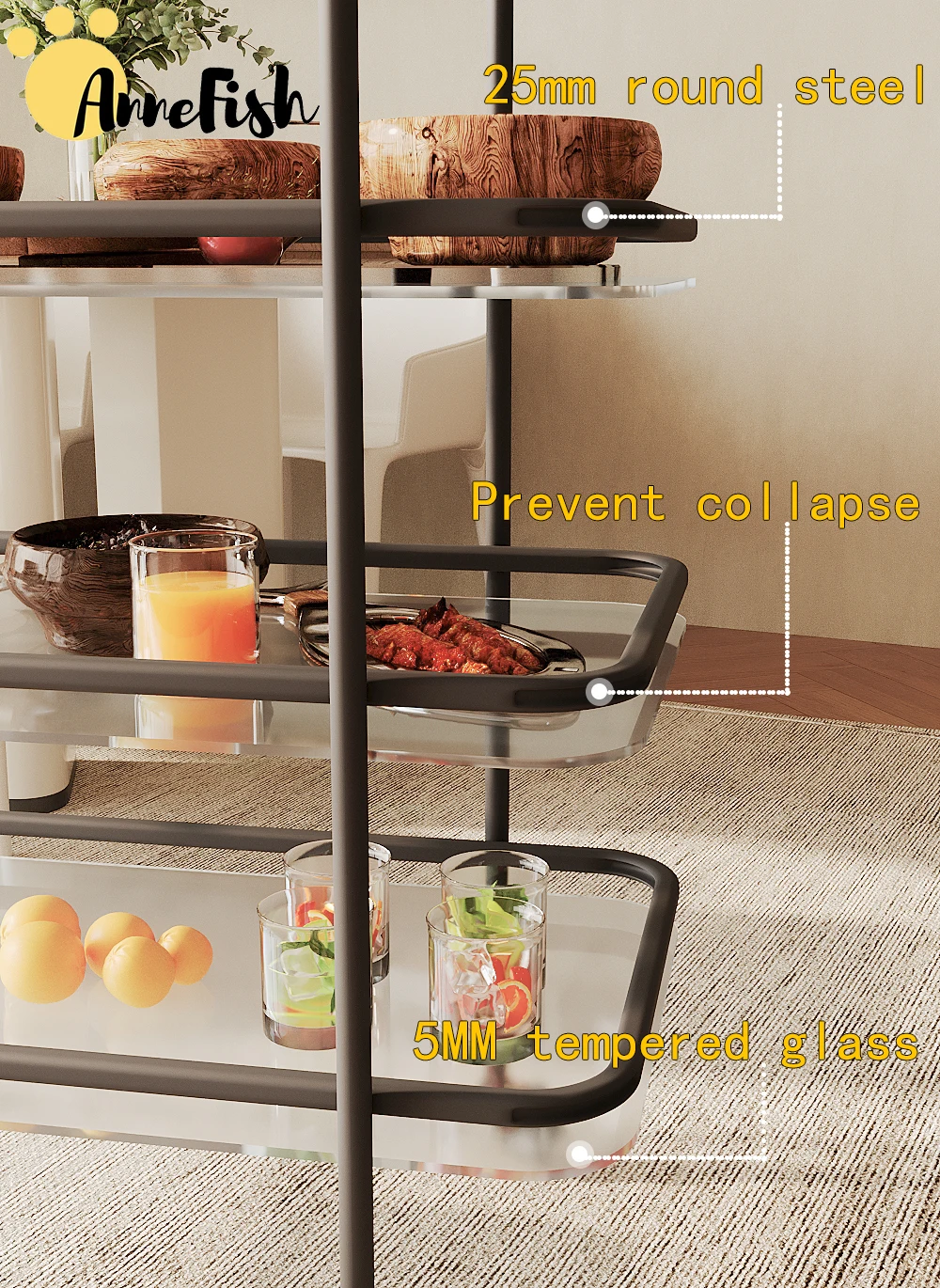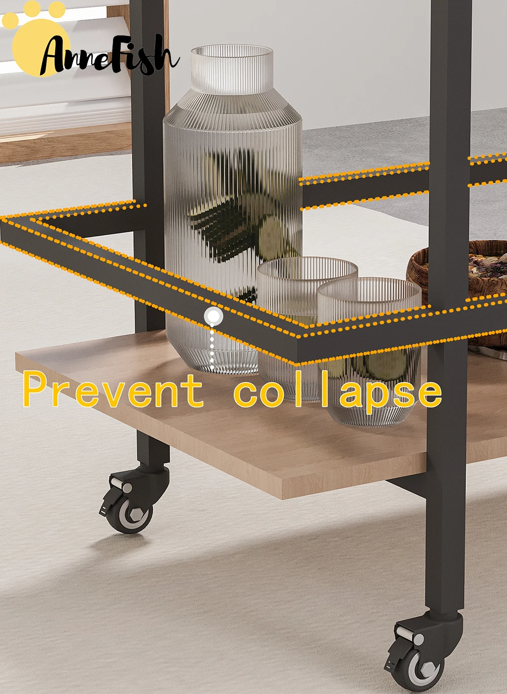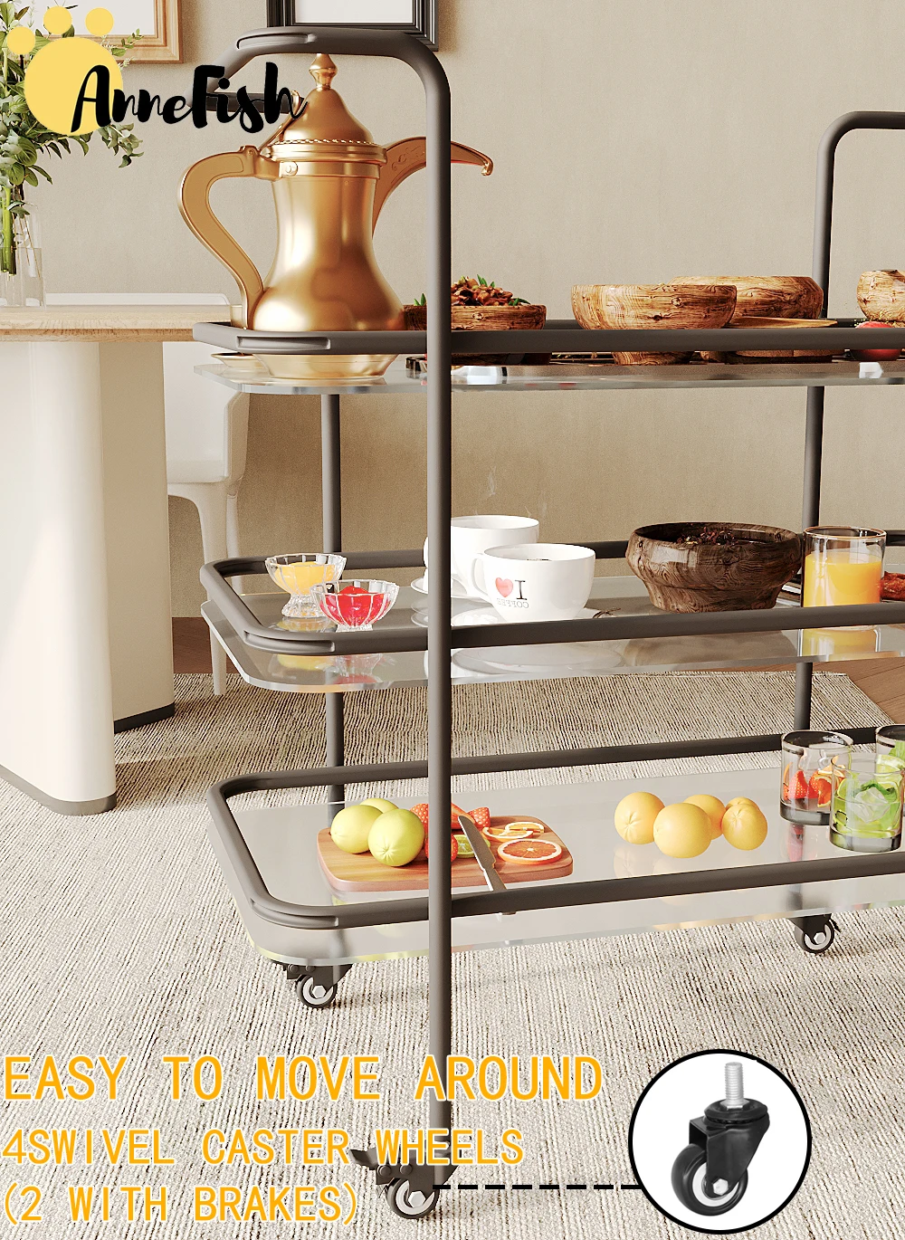 عربة تقديم دوارة عربة تقديم بار منزلي بعجلات وأرفف تخزين عربة مشروبات مع قضبان واقية للمطبخ