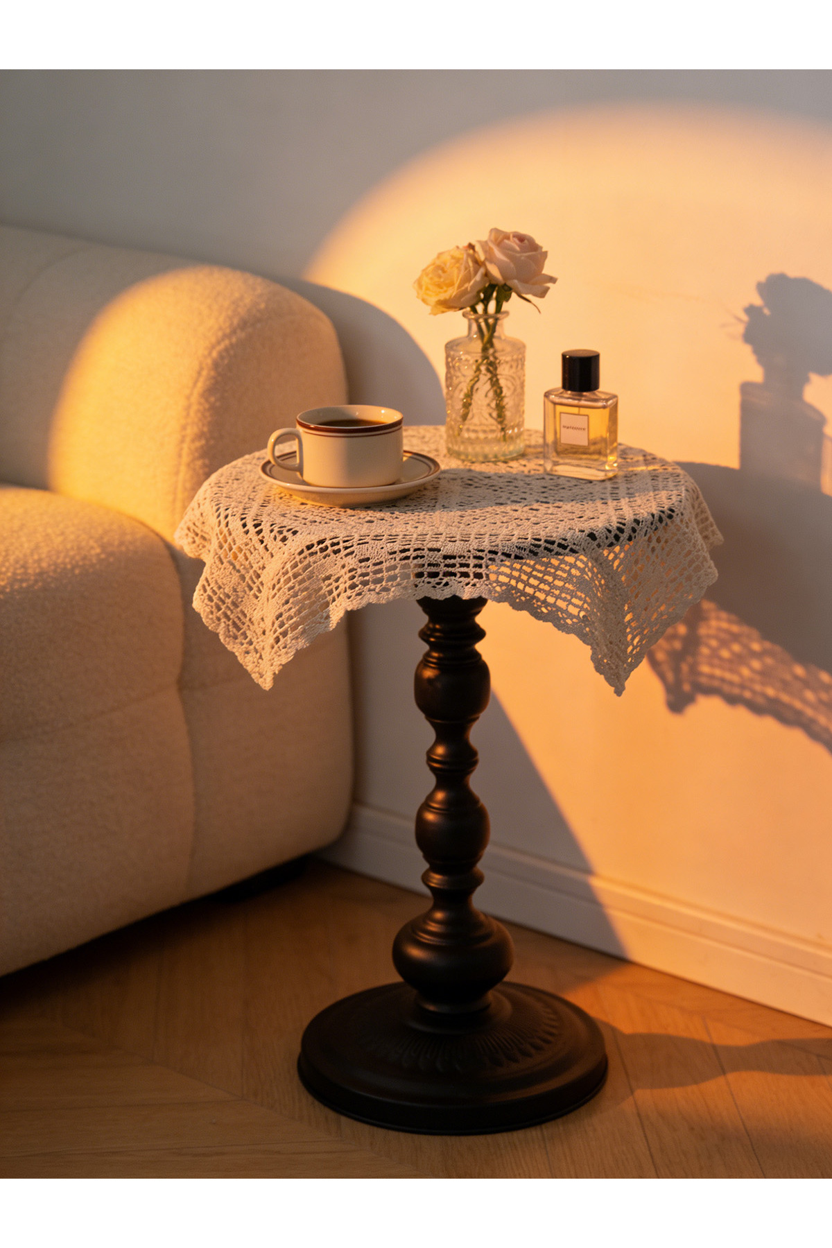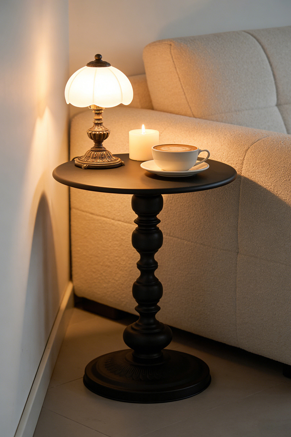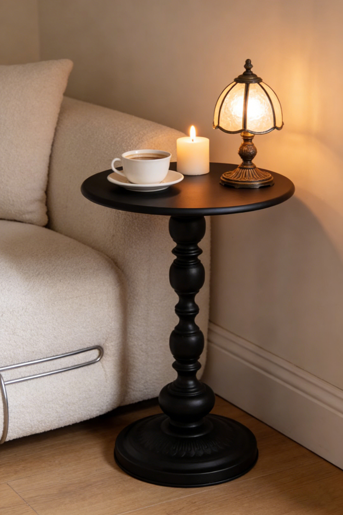 طاولة جانبية كلاسيكية مستديرة بقاعدة سوداء - طاولة جانبية أنيقة لغرفة المعيشة أو المدخل