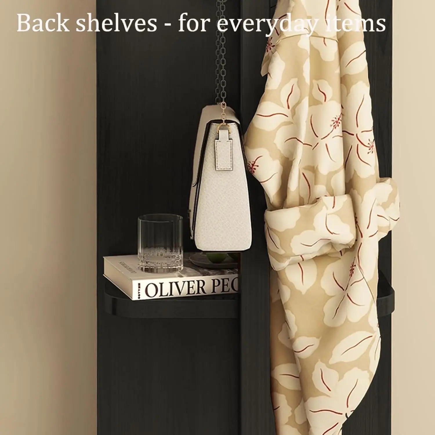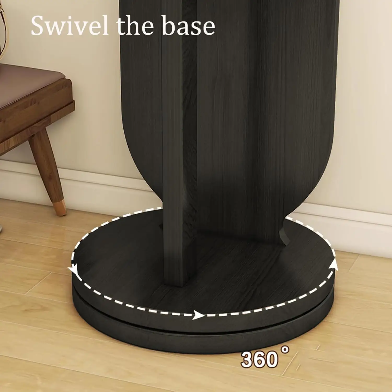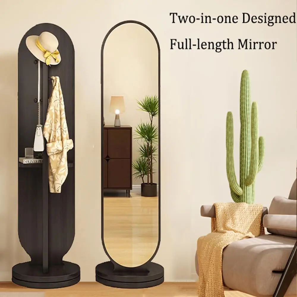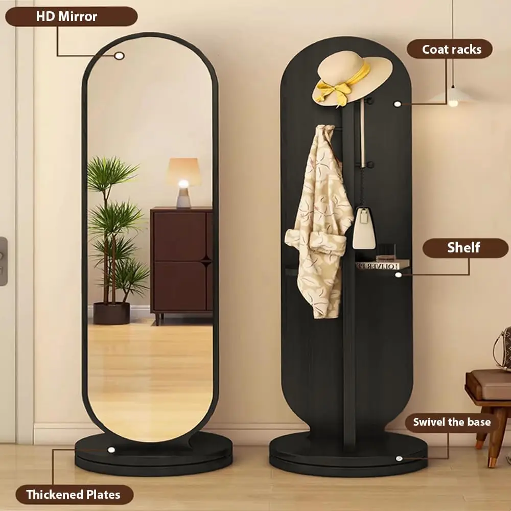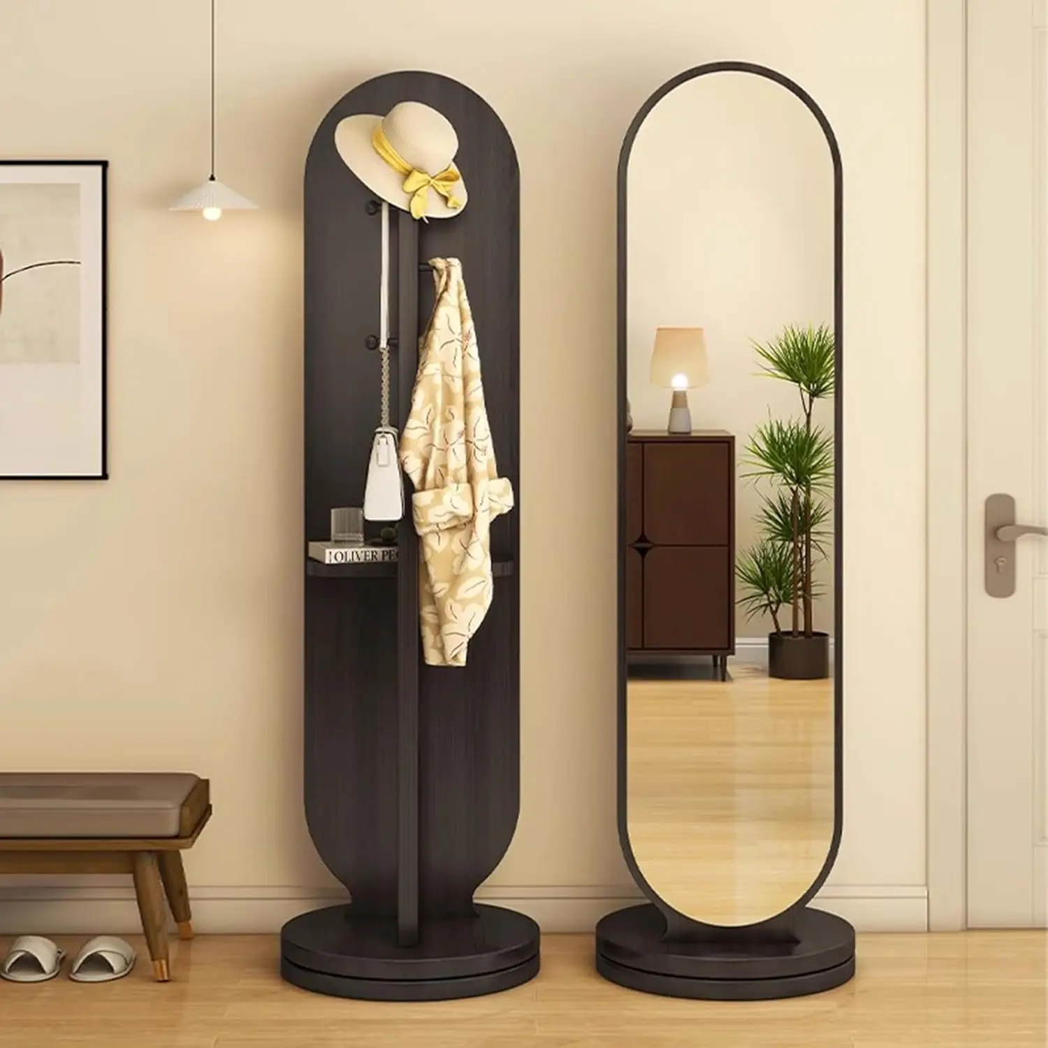 مرآة دوارة مع شماعة معطف ورف في إطار خشبي، قائمة بذاتها لغرفة النوم أو المدخل من