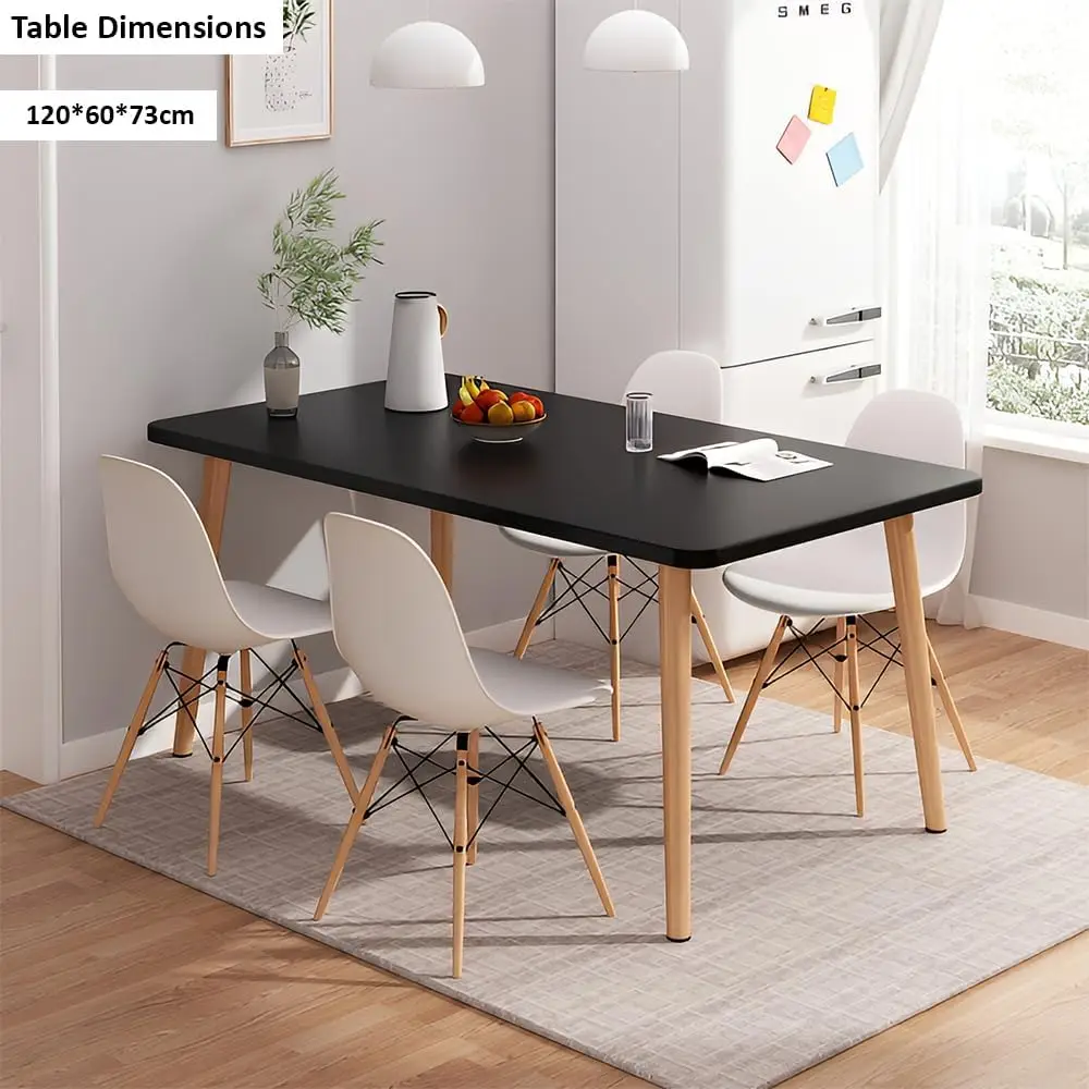 تم تصميم طقم طاولة الطعام المستطيلة الحديثة من الخشب الصلب من Taimi لإضفاء لمسة من الأناقة والوظائف العملية على منزلك. يتميز هذا الطقم بطاولة أنيقة مصنوعة من الخشب الأسود مع أربعة كراسي بيضاء راقية، مما يمنحه مظهراً عصرياً وأنيقاً يتناسب بسهولة مع مختلف أنماط الديكور المنزلي. بأبعاد 120×60×73 سم، تعد الطاولة ذات حجم مثالي لغرف الطعام أو المطابخ أو الشقق، حيث توفر مساحة واسعة للجلوس لتناول وجبات العائلة أو التجمعات الحميمة.